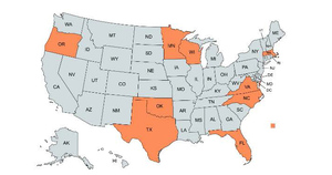 Survey results were comprised of 22 participants from nine states (Figure 1). The sample (Table 1) consisted of mostly females (n=15, 68.2%), ages ranging from 27 to 63 years old, who had a mean age of 27.14 (SD=10.13) Most identified as White (n=16, 72.7%) followed by Black (n=2, 9.1%), heterosexual (n=17, 77.3%), married (n=11, 50.0%) or single or never married (n=5, 22.7%). Most had a professional degree (n=10, 45.5%) followed by some college (n=6, 27.3%), and finally, a four-year degree (n=4, 18.2%). Household income median was $80,000-$89,999 (IQR=$60,000-$69,000, $100,000-$149,999). A full-time employment status was endorsed by most (n=21, 95.5%) and they mostly reported one to four years employment (n=9, 40.9%) at the school followed by more than 5 years (n=8, 36.4%). They were also mostly located in a suburban (n=11, 50.5%) area followed by urban or city areas (n=9, 40.9%). Most participants were not social workers (n=1) or counselors (n=6) and instead reported other roles (n=11, 50.0%) such as teacher, dean of students, executive director or director, mental and behavioral health specialist, program director/school counselor, or a recovery coach.